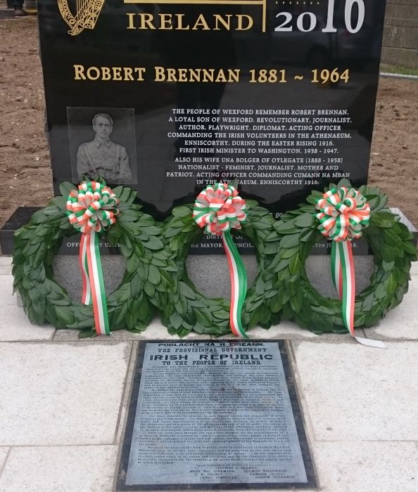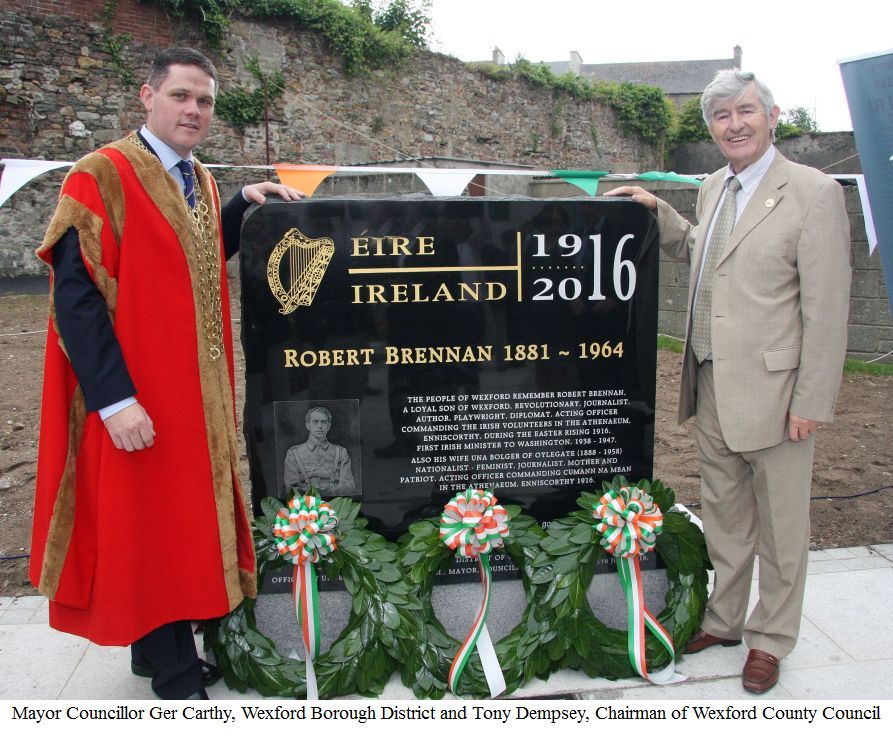 Laying of Wreath by Minister Paul Kehoe on behalf of the Irish Government Laying of Wreath by His Worship the Mayor, Councillor Ger Carthy on behalf of the people of Wexford Laying of Wreath by relatives Ita Doyle and Tony Walshe on behalf of the family of Robert and Una Brennan