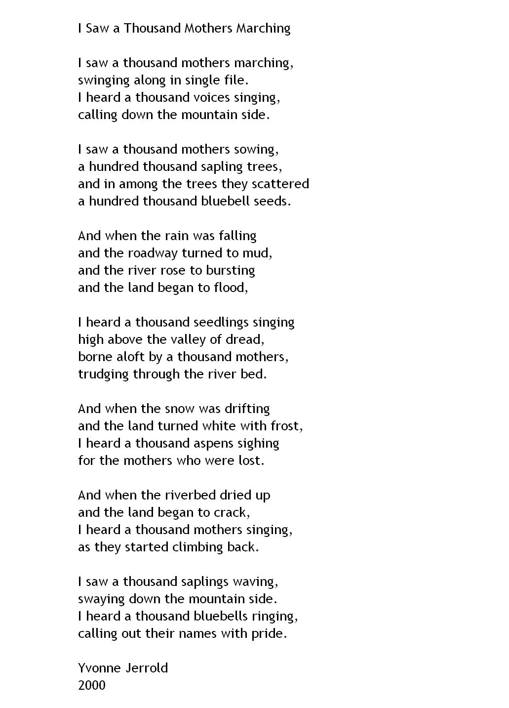 saw a thousand mothers marching