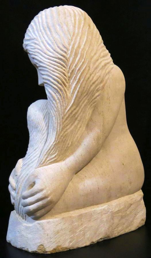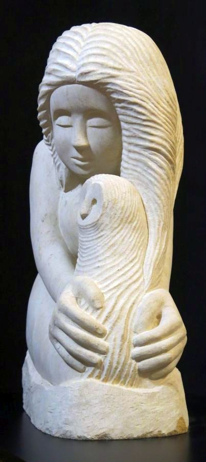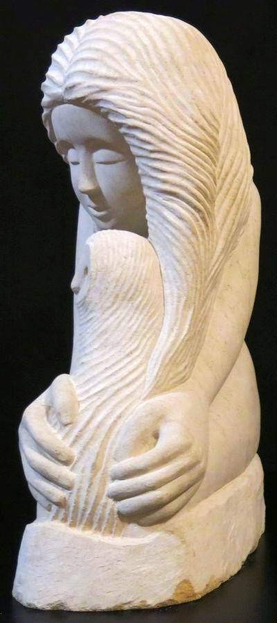 I carved Girl with an Owl from a 79 kg block of Ancaster Limestone. |