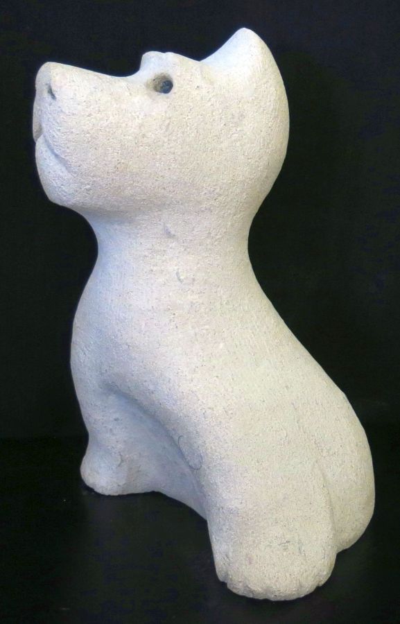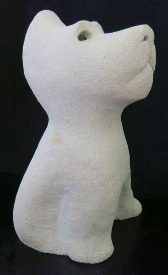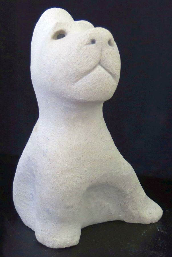 Kiki was carved from a rough piece of limestone I found among several stones that were given to me by a kind neighbour who visited my Open Studio in 2016. I do not know what type of limestone it is, only that it is coarse-grained and contains a large number small fossils and shells. |
