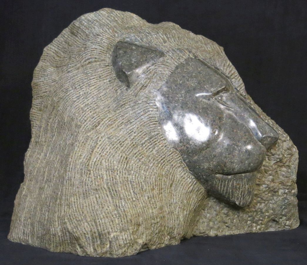 I carved the Lion King from a 63.7 lb block of polyphant stone. The back of the carving is left untouched showing the varied colours of the stone in its natural state. |